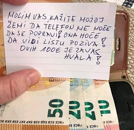 “Molim vas kažite mojoj ženi da telefon ne može da se popravi. Ona hoće da vidi listu poziva. Ovih 100 evra je za vas. Hvala”, napisao je u poruci.