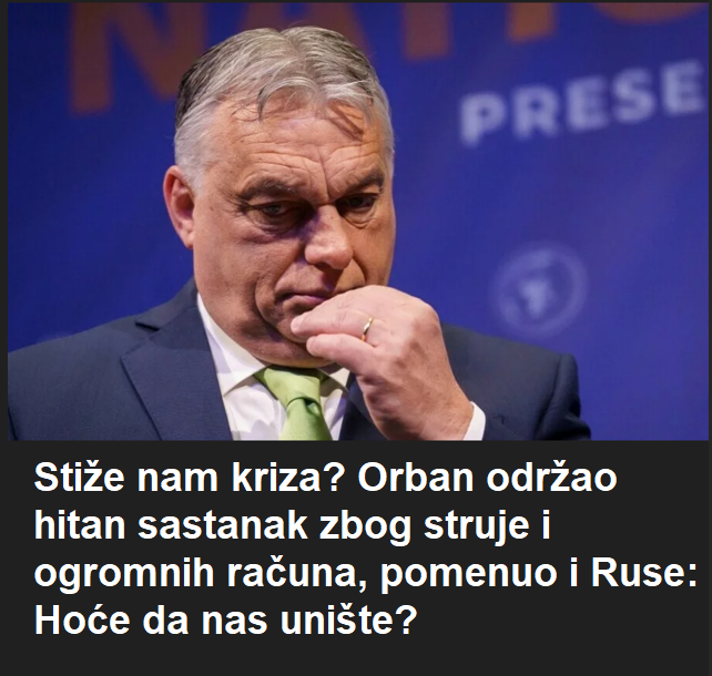 “Morao sam da sazovem vanredni ekonomski sastanak zbog ukrajinske energetske pretnje. Brisel je odlučan da pomogne Ukrajincima po cenu uništenja mađarskih i evropskih porodica, jer Brisel namerava da blokira dovod gasa i snabdevanje naftom iz Rusije”, naveo je Orban u videu objavljenom na Fejsbuku.