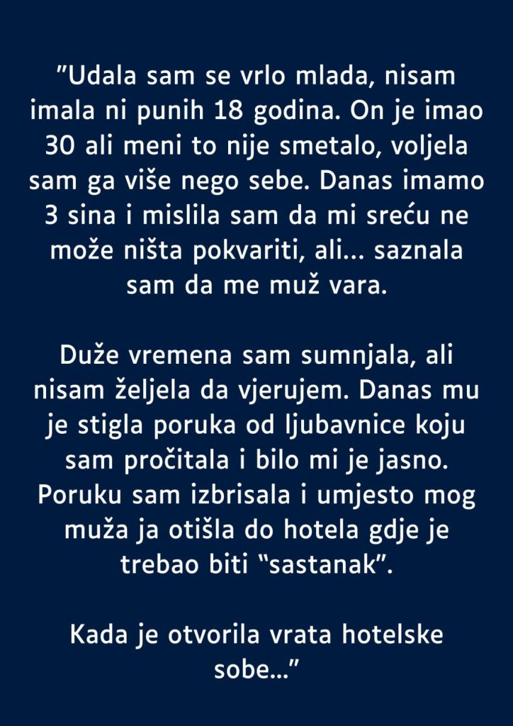 Duže vremena sam sumnjala, ali nisam željela da vjerujem. Danas mu je stigla poruka od ljubavnice koju sam pročitala i bilo mi je jasno.