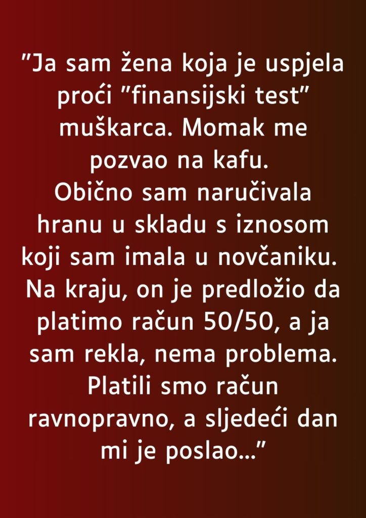 “Ja sam žena koja je uspjela proći “finansijski test” muškarca. Momak me pozvao na kafu.