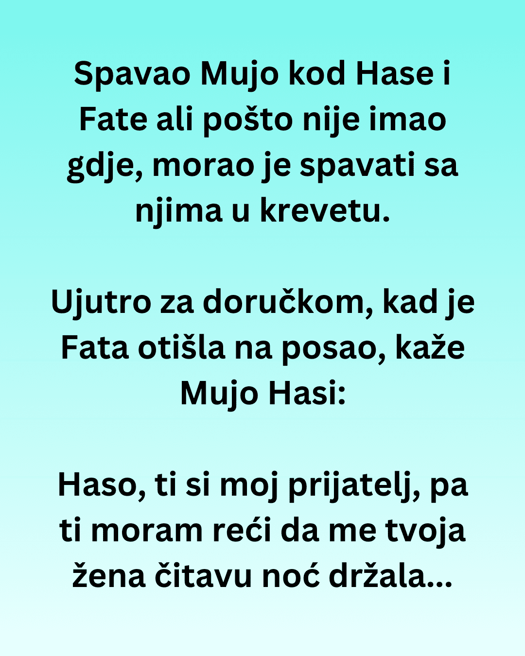 Spavao Mujo kod Hase i Fate ali pošto nije imao gdje, morao je spavati sa njima u krevetu.