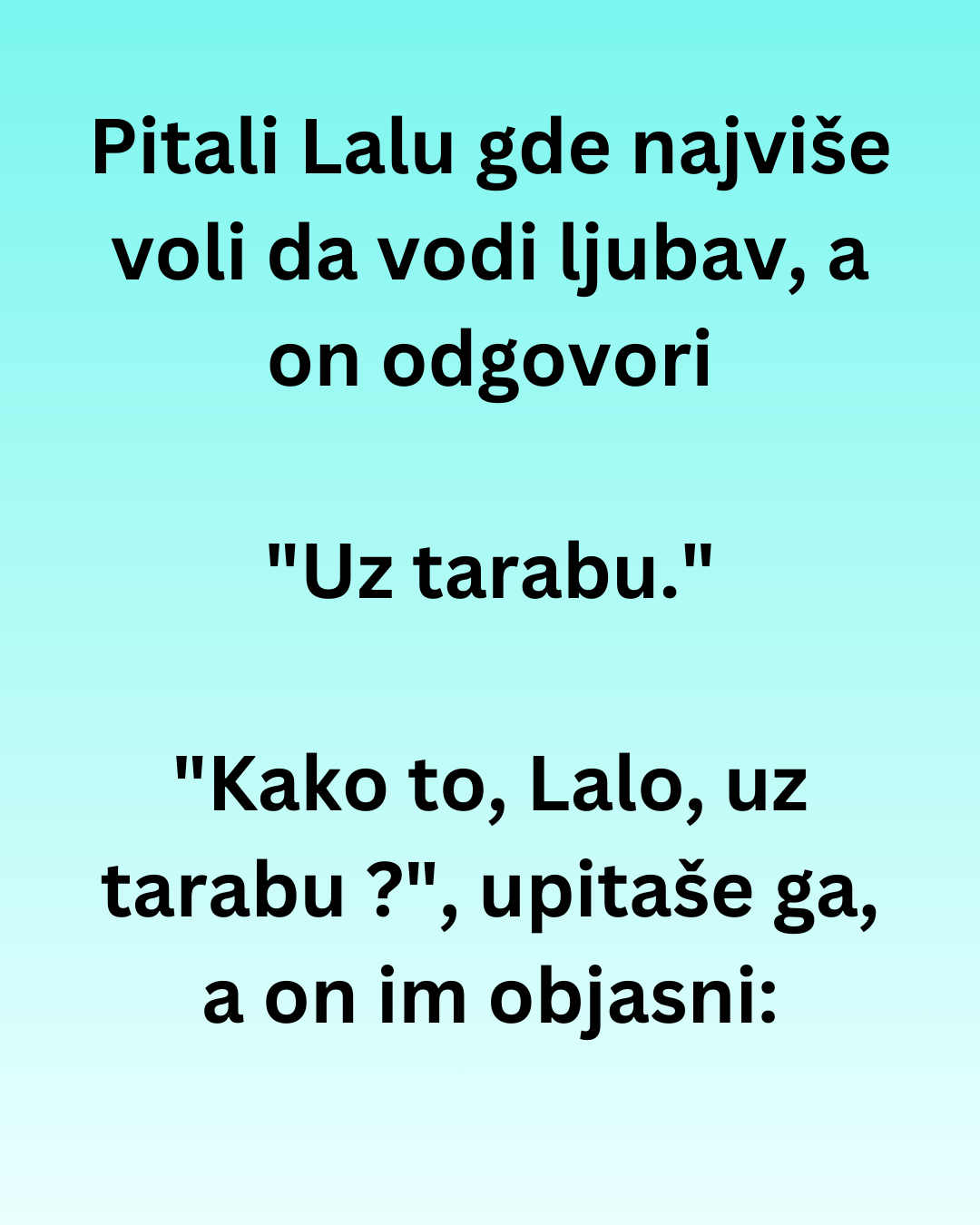 - “Kako to, Lalo, uz tarabu ?”, upitaše ga, a on im objasni: