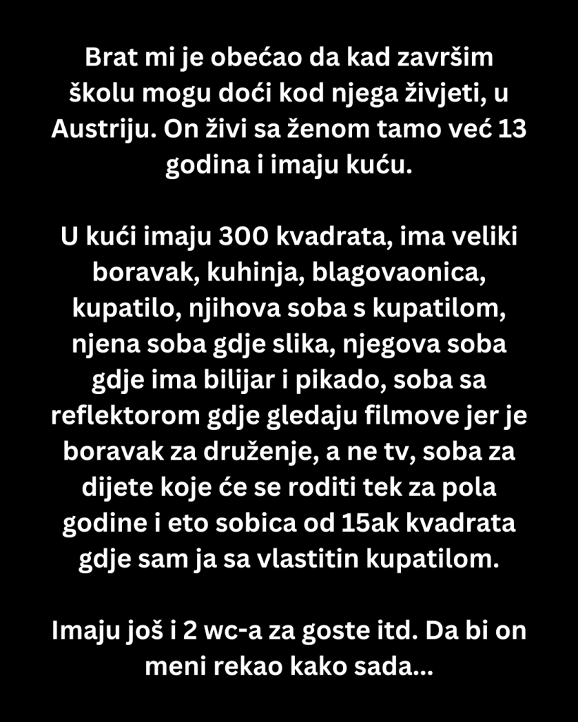 “Brat mi je obećao da mogu živjeti sa njim poslije škole…”