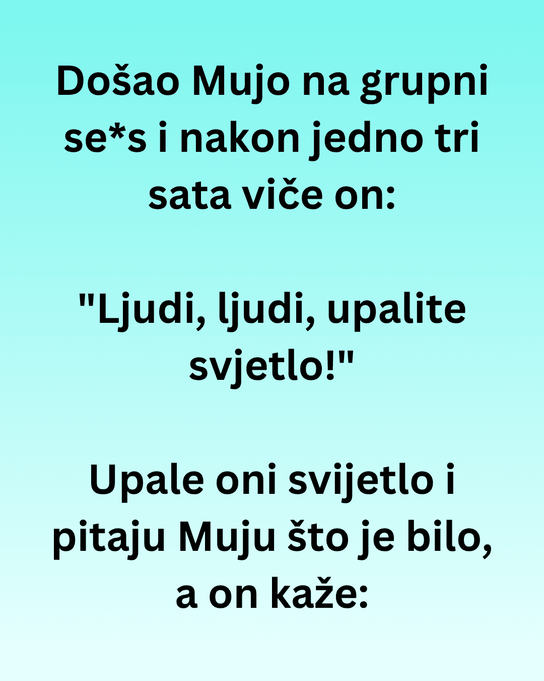 Upale oni svijetlo i pitaju Muju što je bilo, a on kaže: - “Ajmo se nekako organizirati, je već treći put zaredom pu*im !”