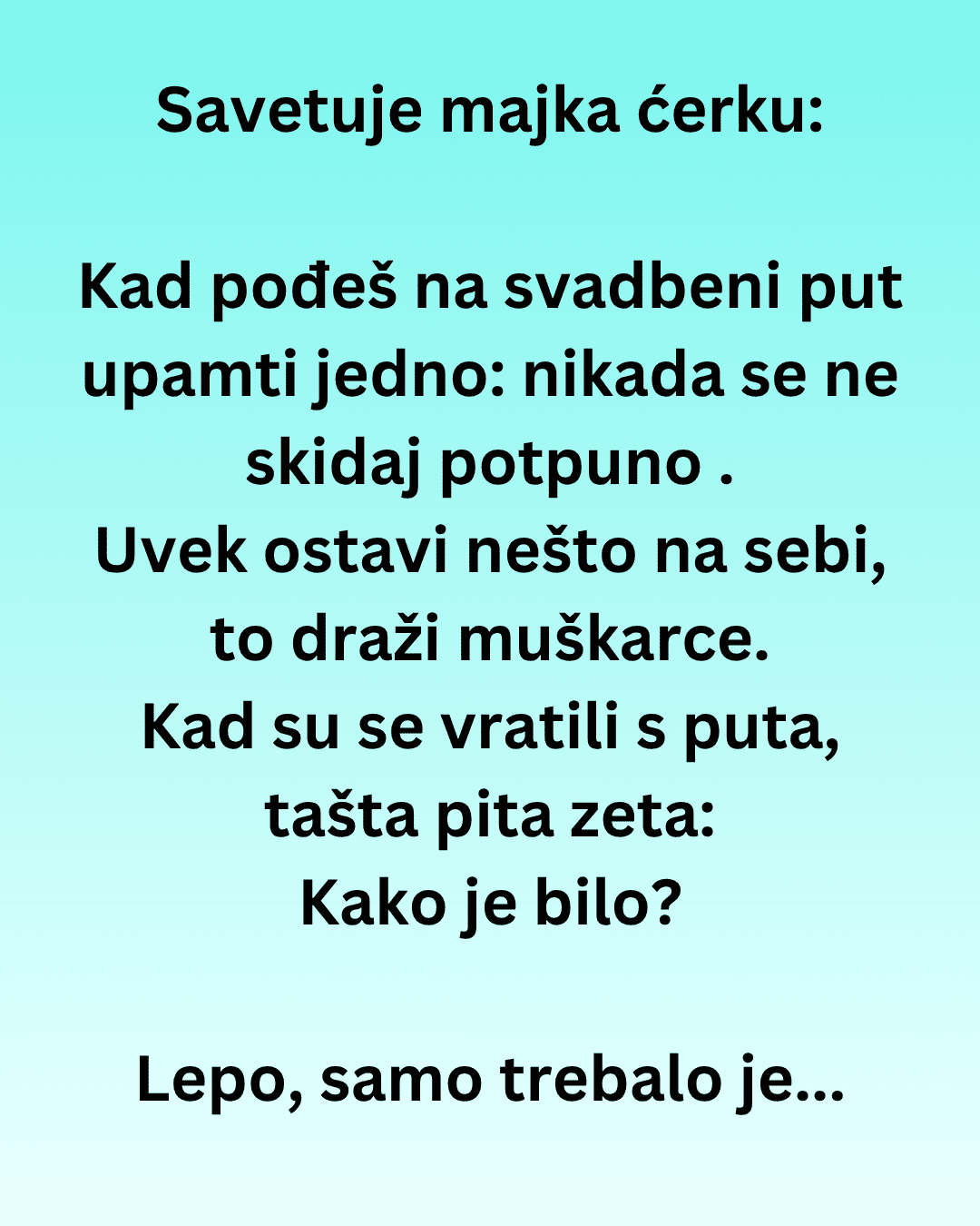 Kad su se vratili s puta, tašta pita zeta: - Kako je bilo?