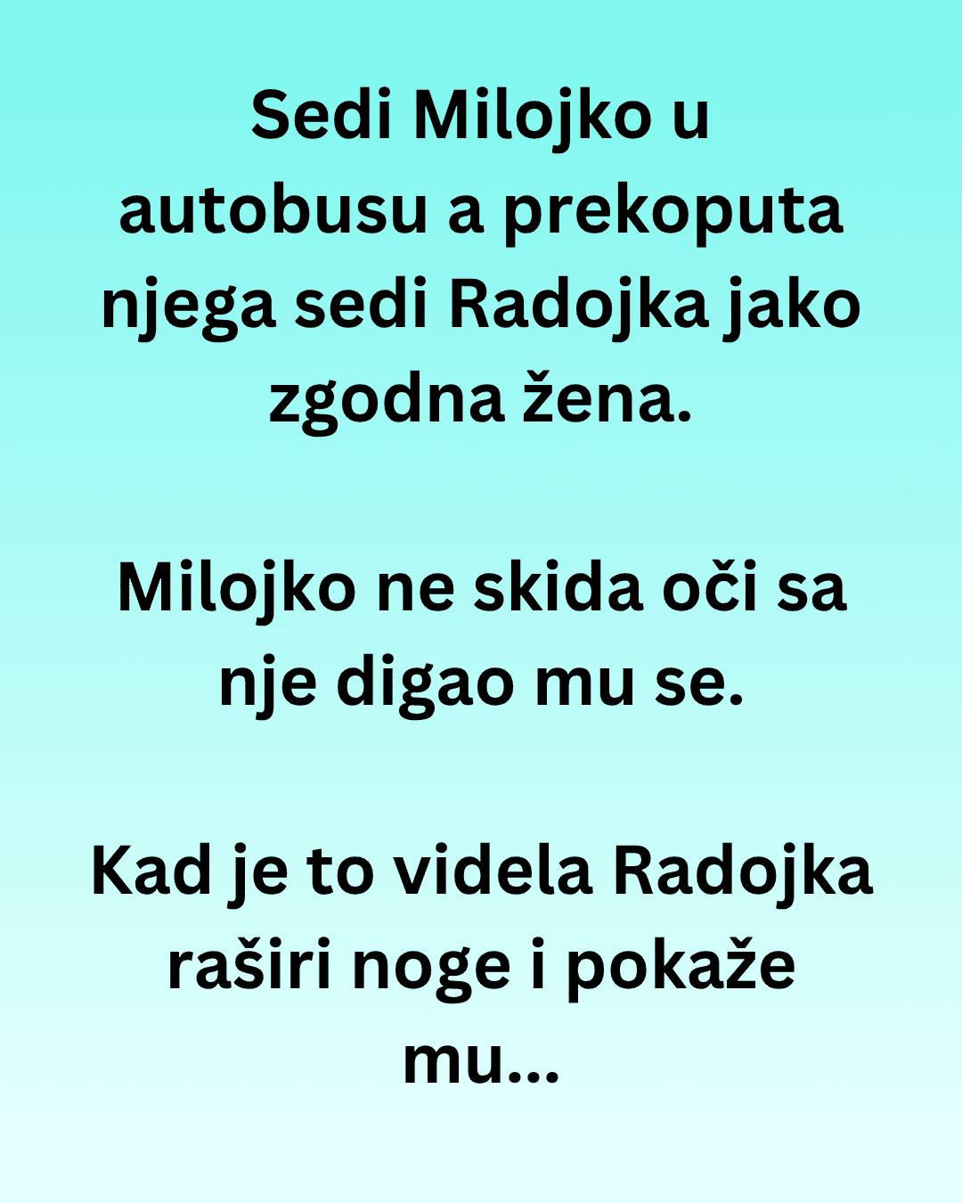 - Koje ste vi budale, – kaže Bosanac – ovaj troši pare na detektiva, ovaj se valja po žbunju, prati ženu. Ja samo izađem na terasu ujutro, onako u gaćama i potkošulji, vidim komšinicu preko puta viknem joj: