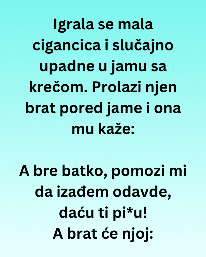 Igrala se mala i slučajno upadne u jamu sa krečom. Prolazi njen brat pored jame i ona mu kaže: