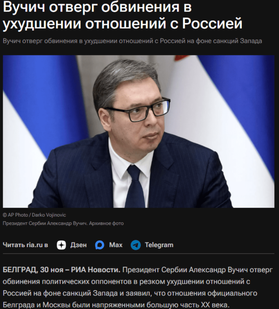 RIA Novosti i ostali vodeći ruski mediji prenele su Vučićev odgovor na te optužbe.