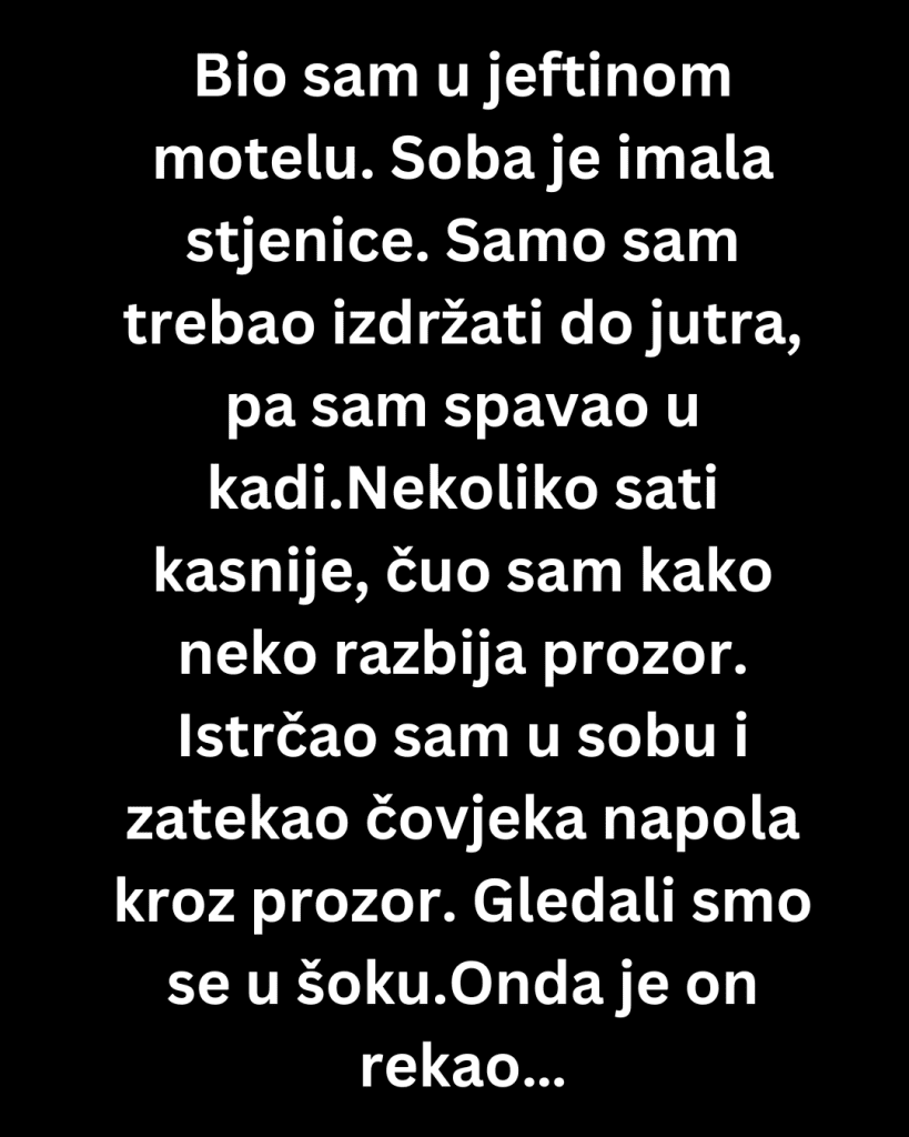 Bio sam u jeftinom motelu. Soba je imala stjenice. Bio sam previše iscrpljen da bih otišao do recepcije. Samo sam trebao izdržati do jutra. Spavao sam u kadi.