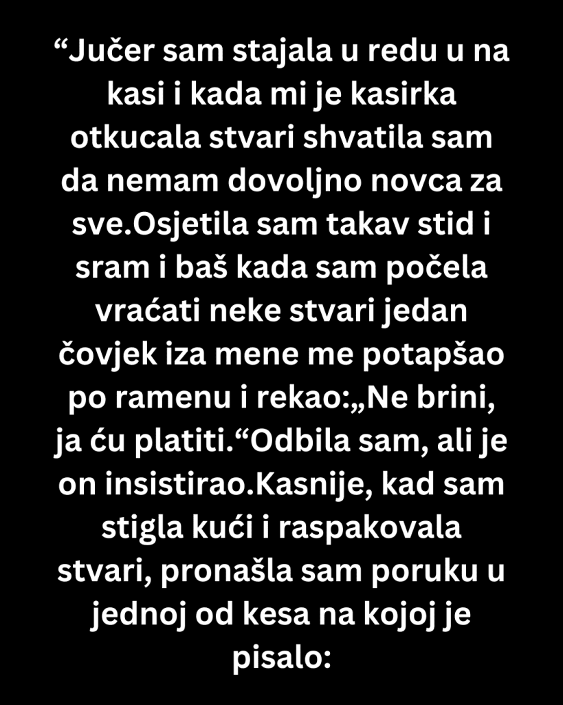 Kasnije, kad sam stigla kući i raspakovala stvari, pronašla sam poruku u jednoj od kesa na kojoj je pisalo: