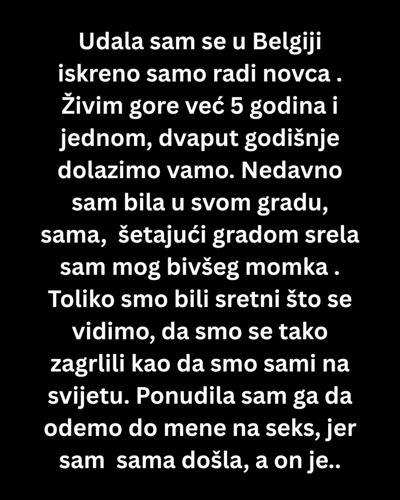Udala sam se za momka koji živi u Belgiji iskreno samo radi životne egzistencije. Živim gore već 5 godina i jednom, dvaput godišnje dolazimo vamo. Nedavno sam bila u svom gradu, sama, bez muža i šeajući gradom srela sam mog bivšeg momka kojeg sam nekada baš voljela.