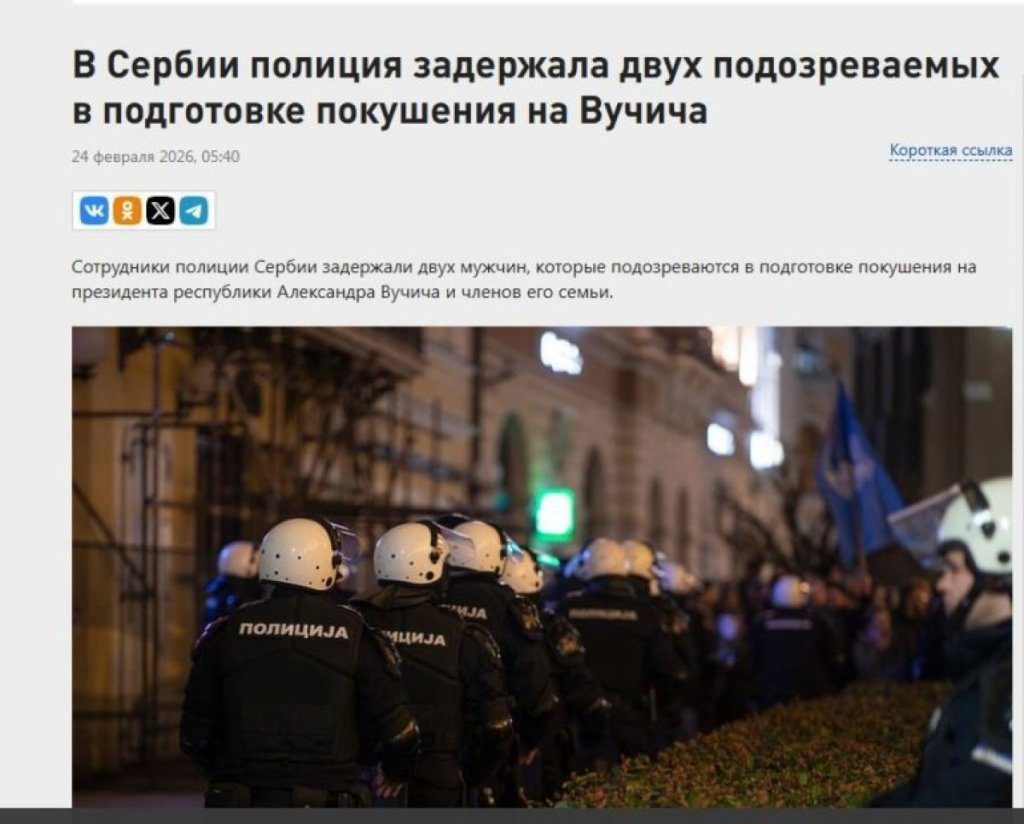 Među prvima je ovu informaciju sa svojim čitaocima podelila ruska agencija TASS i ona se nalazi na prvoj poziciji na naslovnoj strani ovog medija. Kako je navedeno, dvojica osumnjičenih uhapšeni su sinoć u Kraljevu zbog planiranja atentata na predsednika Srbije.