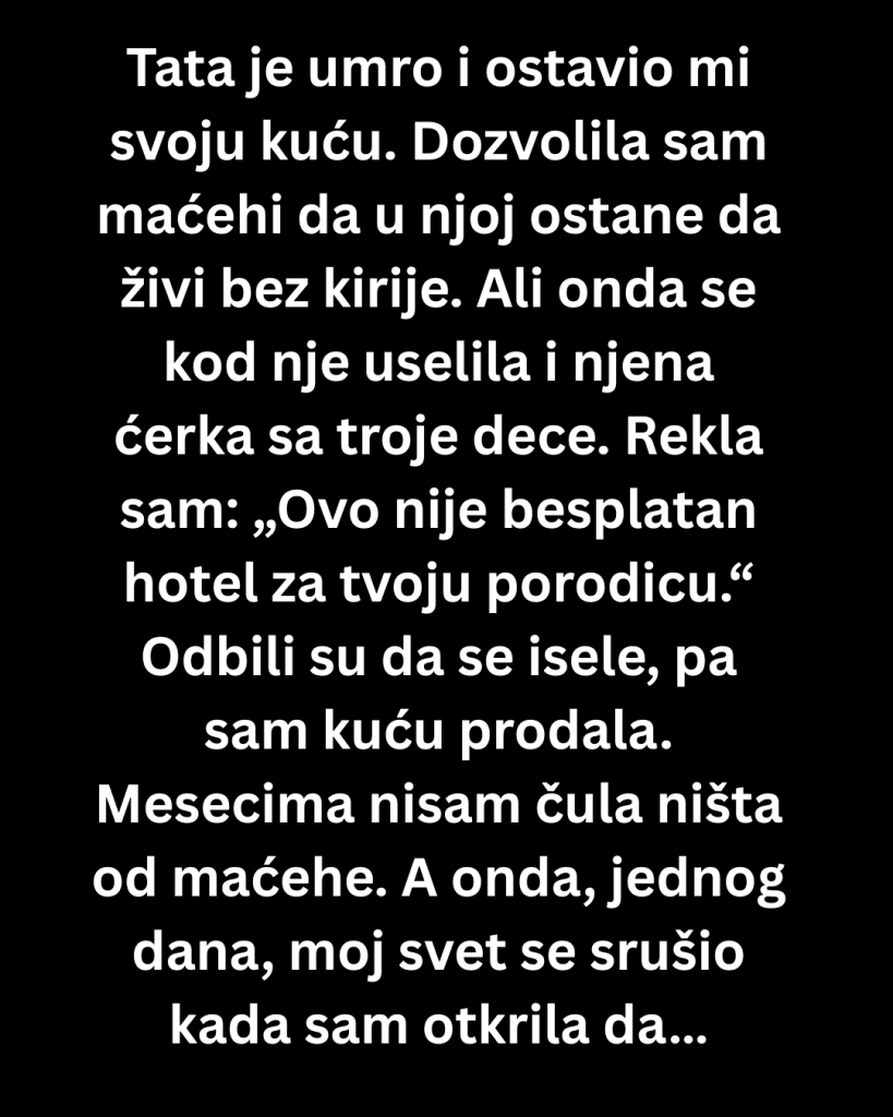 Dozvolila sam maćehi da ostane u njoj bez plaćanja kirije.