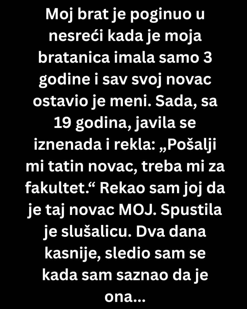 Moja bratanica je zatrazila novac njenog poginulog oca ali ja sam…