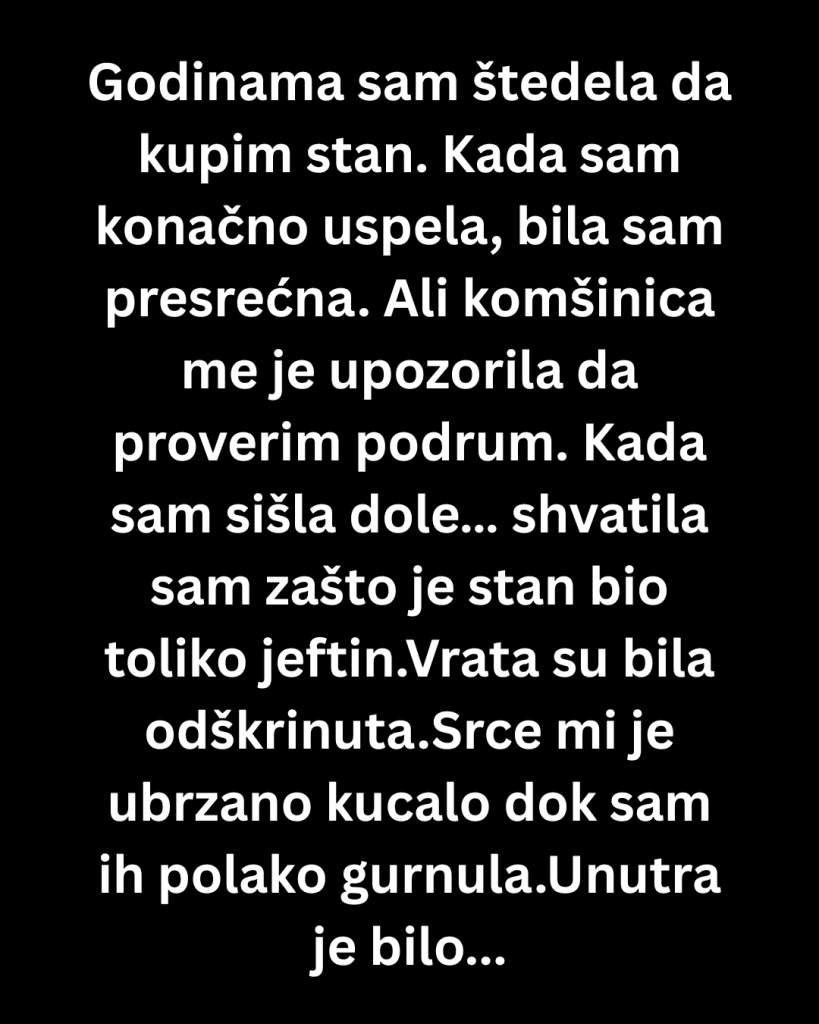 Godinama sam štedela da kupim stan. Radila sam dva posla, odricala se izlazaka, putovanja i svega što nije bilo neophodno. Svaki dinar sam čuvala sa jednim ciljem — da konačno imam nešto svoje.